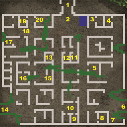 Mines here and in three rooms to the north. Use gray spore baton to detonate. A Battle Alpha and 4 Charged Fyoras roam the surrounding areas. |