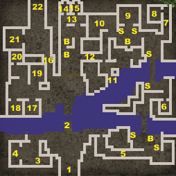 2 power spirals. Disable fire pads at areas 12 and 13. Cabinet (Requies 10 Mech to open) contains reapers, splitting thorns, fiery wand, and steel javelins. |