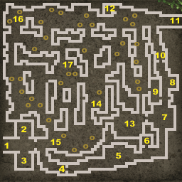 Door requires 3 Living Tools at 12 Mechanics to open. The path from this door through areas 5, 7, and 8 to the door at area 10 is lined with box traps. The red ones explode. The blue ones summon Glaahks. |