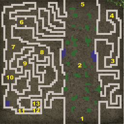 Chests contain Thorn Batons, Venom Batons, Thorns and Venom Thorns. There are Iron Breastplates and Iron Shields on the floor... all of which can be sold back to Treplev. |