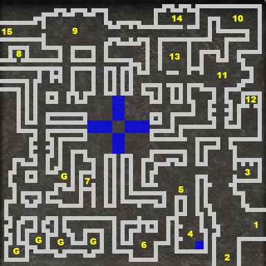 Sythyk (servant mind) controls this zone. He can tell you a great deal about who is in charge of Benerii-Uss. If you have a high enough Leadership, you can order him to stop the roaming golems attacking you, to open up the locked storerooms, and to open the door to area 15. There is a living tool and 3 shaper records on his table. |