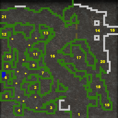 If you move to the southern part of this area, the passage to area 17 will open and you will be attacked by the creatures there. This may be useful in bleeding off a few of the creatures before approaching from area 16. |