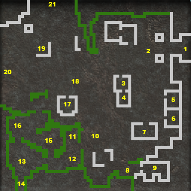 The corpse has a bronze sword and a thorn baton. Thahds and Fyoras roam entire west side of zone. |