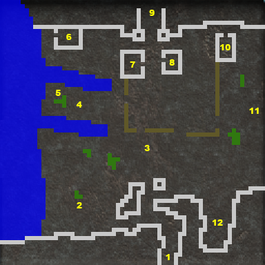 3 Spinecores and their buds are spread out in this area. A chest in the SW corner contains a rod of battle. |