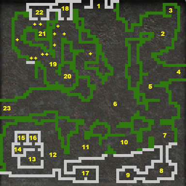 2 Venom Turrets (they shoot poisonous thorns). thorns. Howevver, they can be easily avoided by staying on the northen side of the path. |