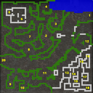 The door to this room requires 1 living tool at 11 Mechanics. The box in the SE corner has a major healing pod, restoration spores and speed spores. There are 4 crystals in the cabinet. |