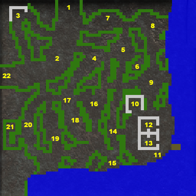There are mines here, but the corpse on the north can be safely approched from the east by hugging the north wall. It contains 15 coins and some shaper equipment. |